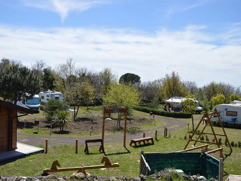 Le piazzole sono disposte su terrazzoni, sia all’ombra che soleggiati, e sono delimitate da alberi ad alto fusto e siepi di piante aromatiche, per la massima piacevolezza e per un livello in più di privacy. Non mancano, naturalmente, i servizi essenziali: allaccio elettrico e colonnine / rubinetto di acqua potabile per i piccoli rifornimenti idrici ma anche piscina estiva, area barbecue, noleggio e-bike e molto altro ancora. La posizione strategica del camping sulla Strada Provinciale che collega Belpasso e Nicolosi, ne agevola l’accesso e lo rende un comodo punto di partenza per visite ed escursioni nei dintorni o in vetta. La cordialità della gestione, giovane e accogliente, ti farà sentire a casa mentre ti godi la tua vacanza immerso nelle meraviglie della natura.